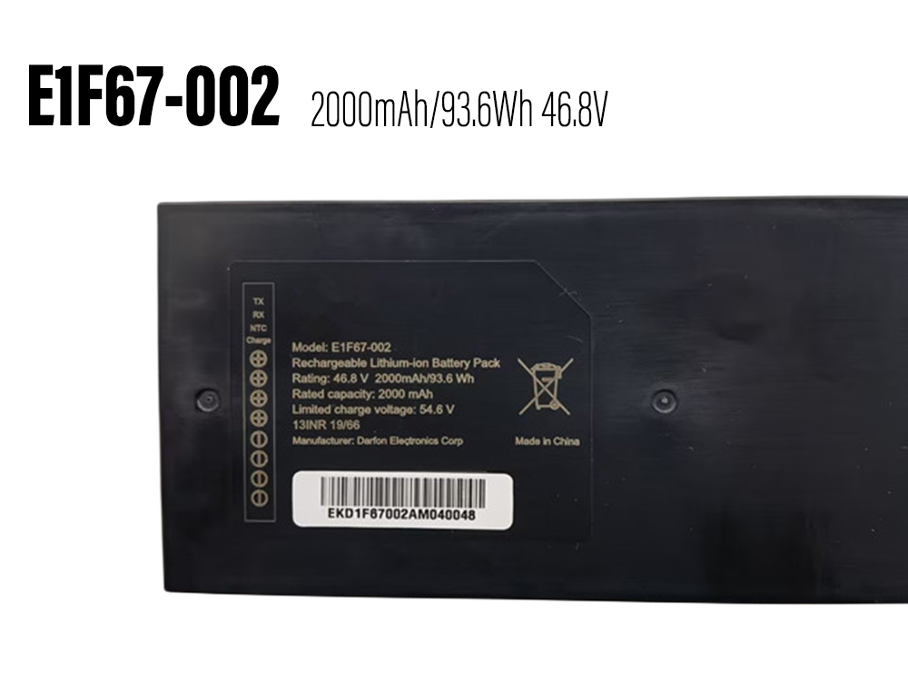 Get your june E1F67-002 battery here at notebookbattery.co.nz, we have a comprehensive directory of june batteries. Our 46.8V 2000mAh/93.6Wh june batteries are completely compatible with JUNE E1F67-002.