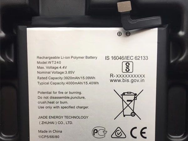 - Don't pierce, hit, step on, crush or abuse the WT240 battery.